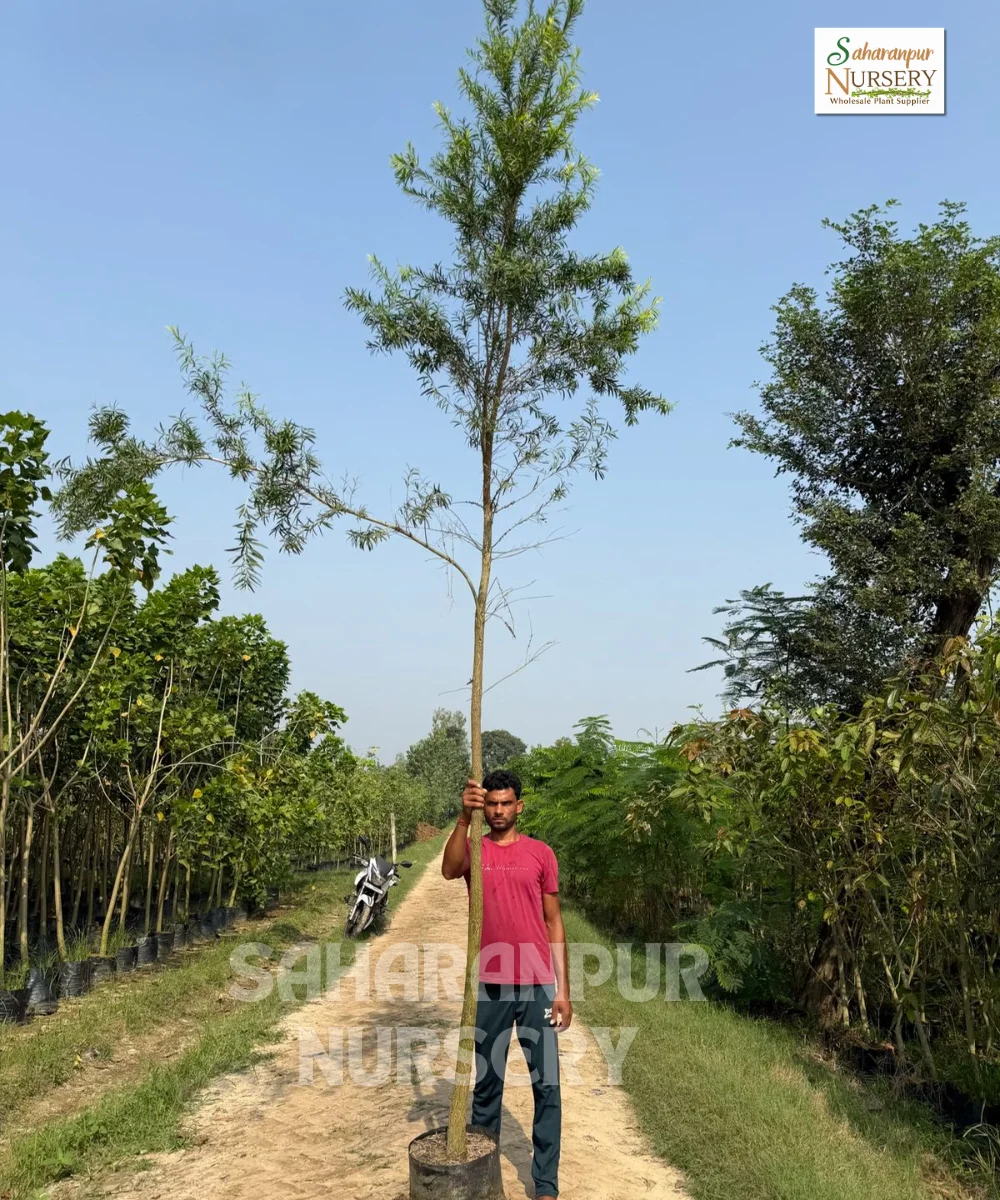 In terms of timber demand, while the Bottle Brush Plant is not a heavy timber supplier, it provides small-scale wood for local construction and household uses. Its main role in India is as a landscaping and avenue tree, combining beauty with utility. At Saharanpur Nursery, Bottle Brush Plants are available in heights ranging from 6 ft. to 18 ft., making them suitable for both immediate landscape impact and long-term timber growth.