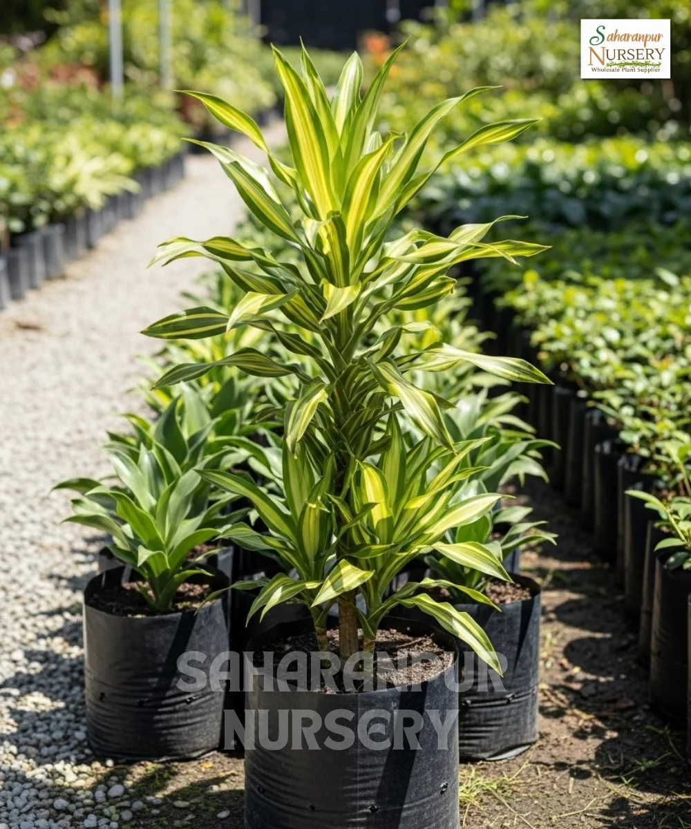 At Saharanpur Nursery, we specialize in providing naturally grown, healthy Variegated Dracaena Plants in bulk. Whether you need them for personal use, home decoration, or large-scale landscaping projects, our plants are available in different sizes and at wholesale prices to suit your requirements.